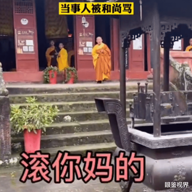 可能是两人争吵的声音太大惊动到了寺庙里其余的和尚。不一会,七八个和尚像流氓一样走出来对着女游客破口大骂。“滚你妈的,香给你扔了就扔了,你能把我怎么样?”要不是亲眼所见谁能相信这种恶心的话出自出家人之口。