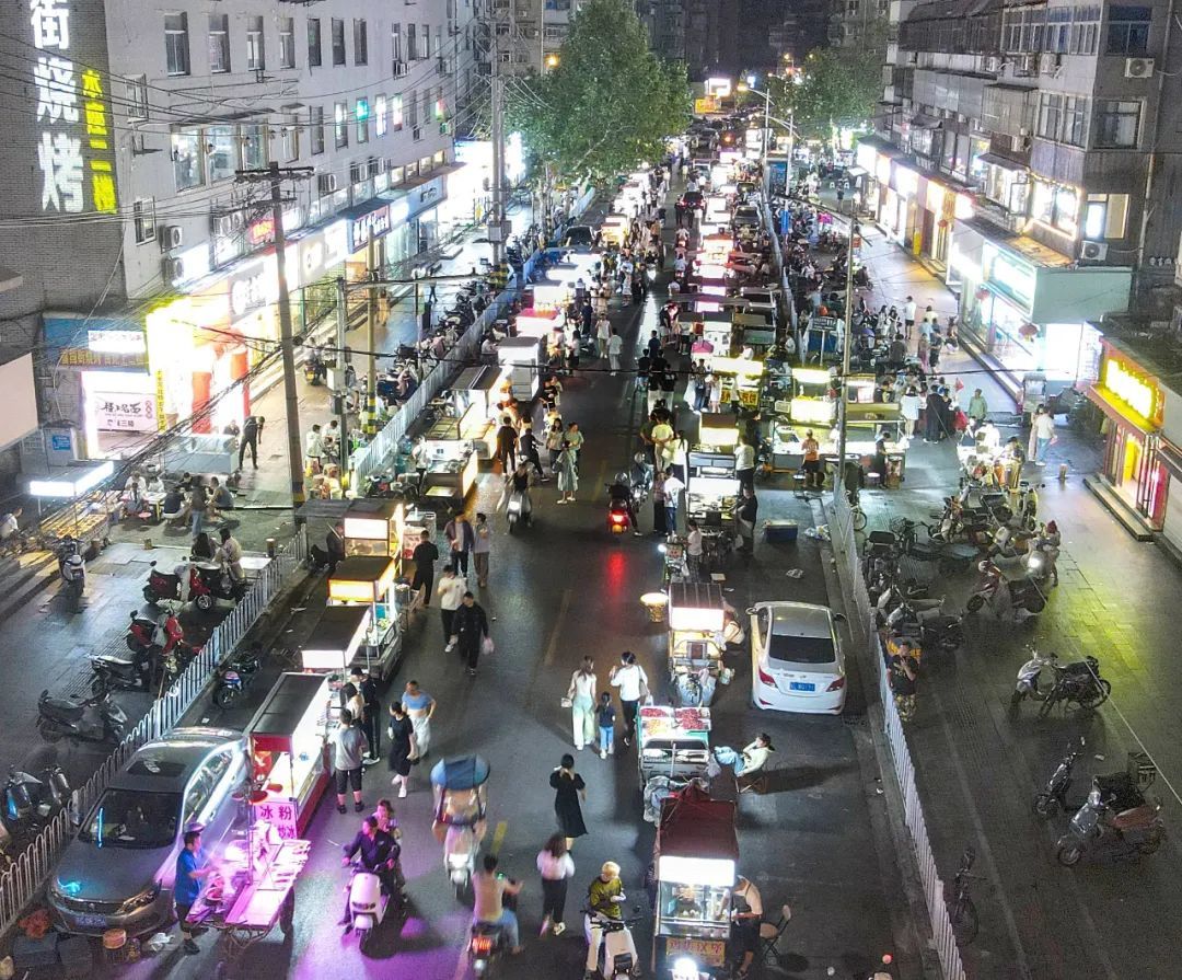 徐州菜、冒菜、汉堡、烤肉、麻辣烫、螺蛳粉、串串香、酱猪蹄、炸鸡、羊肉串、砂锅……各种美食琳琅满目,让人目不暇接。每当走过这些店铺,空气中弥漫的香气总能勾起人们的食欲。