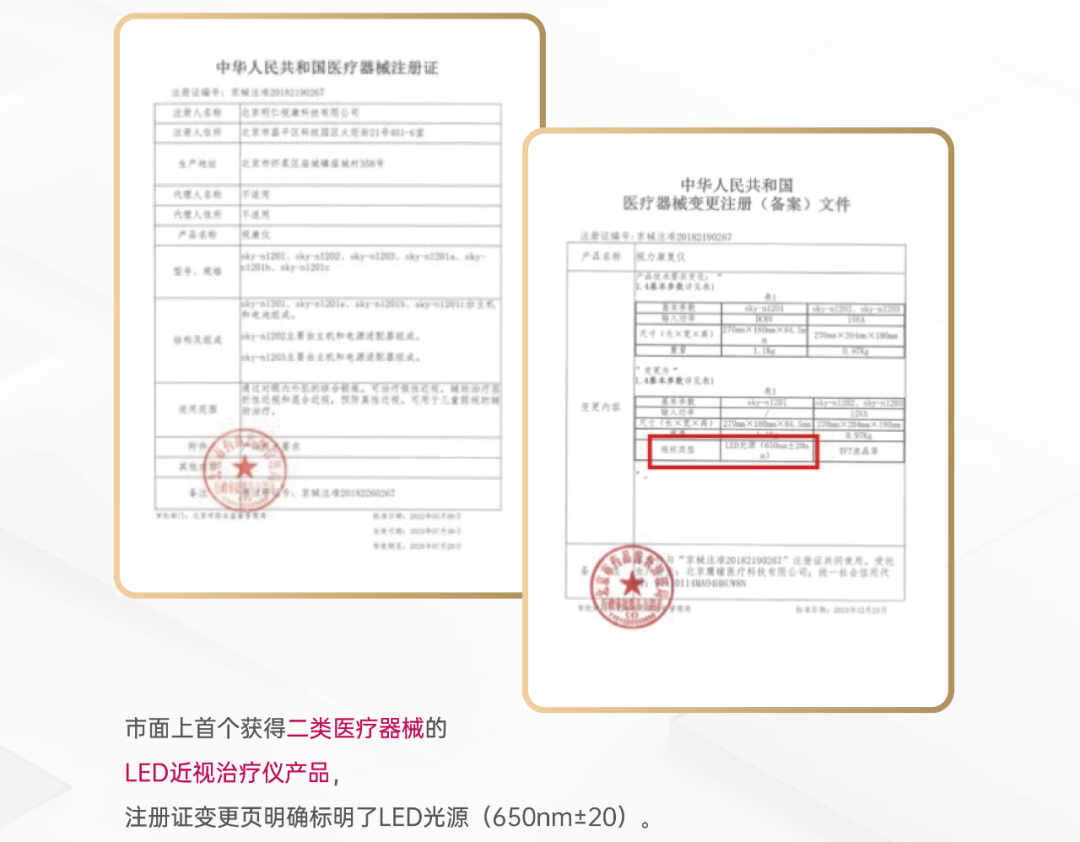 (二)如产品以LED产生的红光为光源照射眼睛,用于近视控制,按照第二类医疗器械管理,分类编码为16-03。