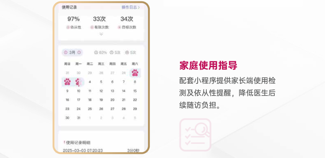 根据儿童不同发育情况提供基于AI算法推荐个性化光疗参数及用眼习惯优化方案,提升干预精准度,帮助家长针对孩子的眼轴发育情况选择合适的控制措施。