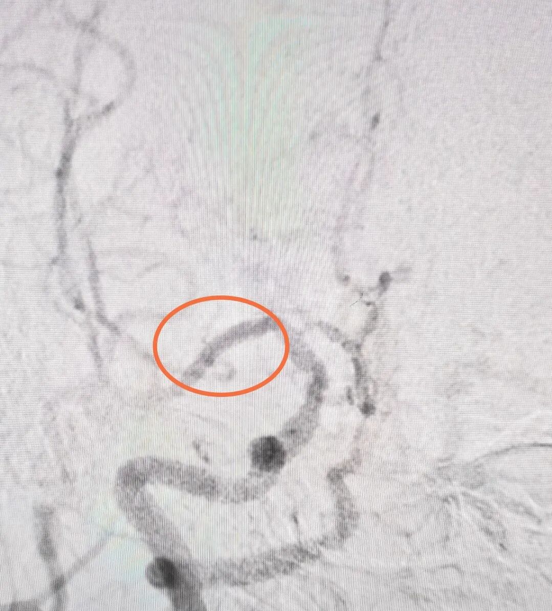 术中发现,刘姨右侧大脑中动脉M1段轻度狭窄,由入院时的重度狭窄,到第二天检查时的中度狭窄80%,到现在的血栓消失,溶栓治疗的及时有效,成功避免刘姨脑血管的大面积梗死!