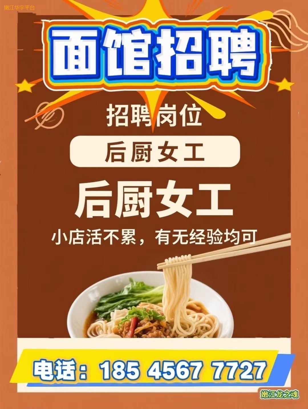 面馆招聘后厨女工,活不累,老板事少,☎️18545677727